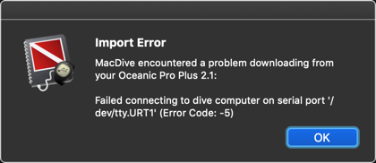 Running Macdive 2.14.1 on macOS 10.14.6 (Mojave) with a Oceanic Pro Plus 2.1 Dive Computer