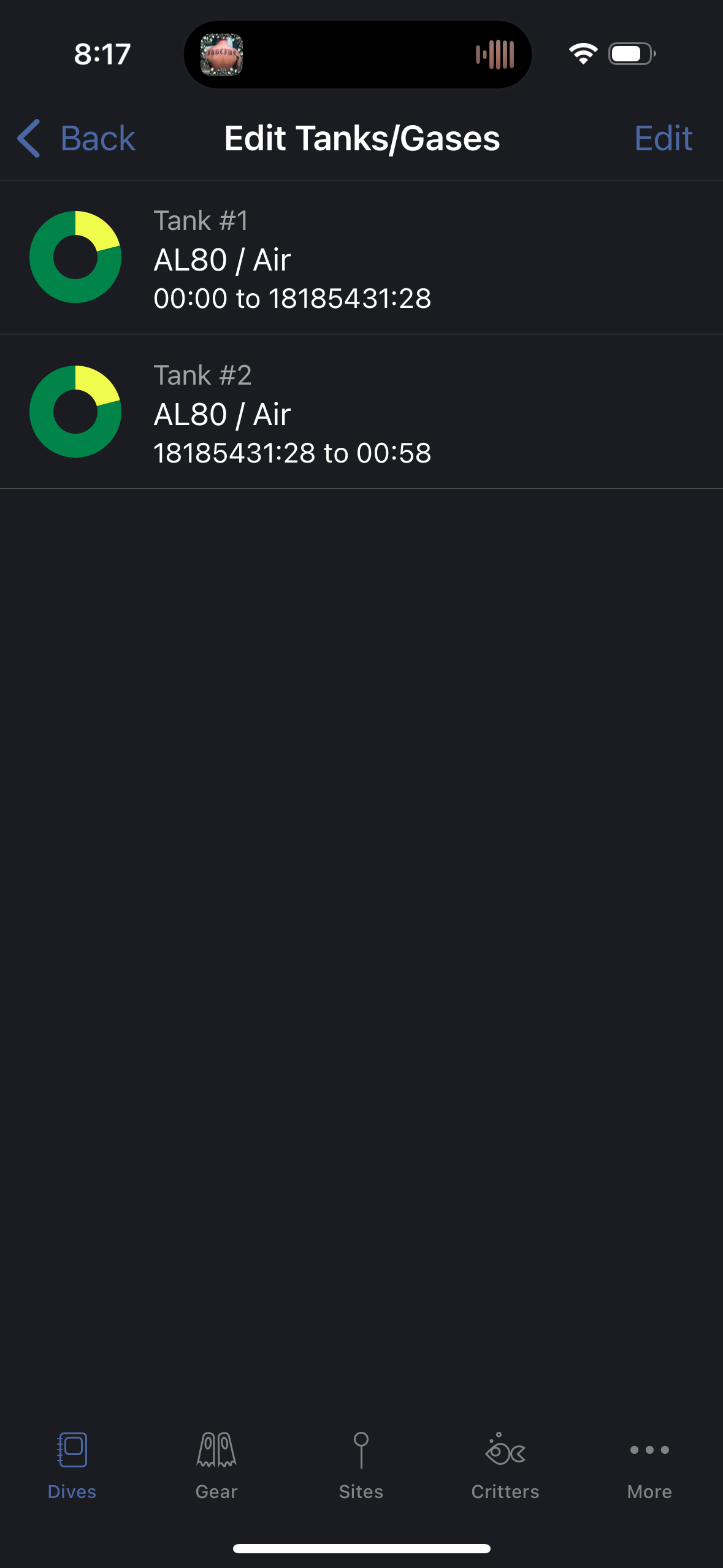 -[bug] When importing, my gas consumption data gets corrupted. First, MacDive creates two tanks, although I’ve only dived with one. Second, the airtime is set as a massive number, which must be bigger than MacDive can handle, because if I click it to manually edit, the app crashes.