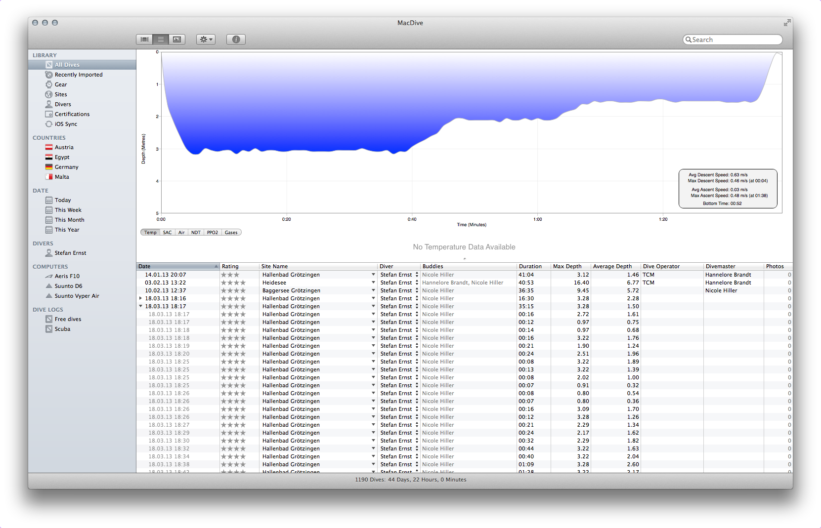 Where you have the summary-line (the session/group), ideally summarizing the data of the dives contained (or if that would be a lot less effort it'd also be a start to not have the session/summary actually contain any data apart from location and dates).