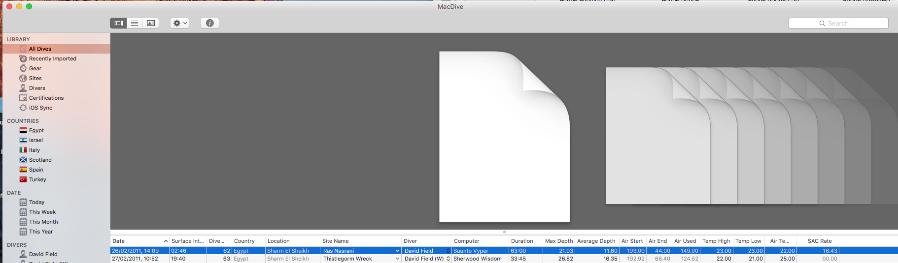 Attached is what the log looks like. I have about 190 photos attached to various dives