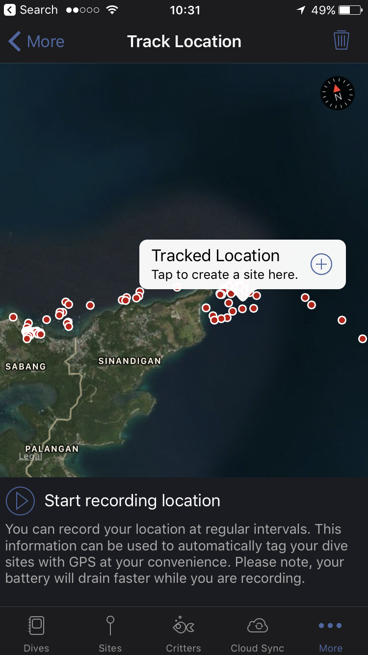 As a result, I have a lot of tracked locations. In several cases, the dives crossed each others and it's very hard from the list of points to be able to determine when it was tracked (e.g. if I should want to determine the various points for a single dive).