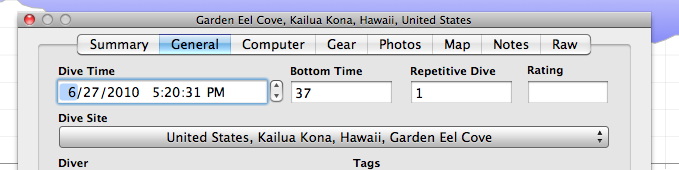 It appears my camera (Canon SD800IS) has saved the data with a time zone extension that is not being read correctly by macdive. The time of the dives and the time on the images match but the images are showing a -500 (Hawaii is five hours behind me in New Orleans) behind the time I'm guessing this is what's causing the problems. Any thoughts on how to get the pics imported correctly??