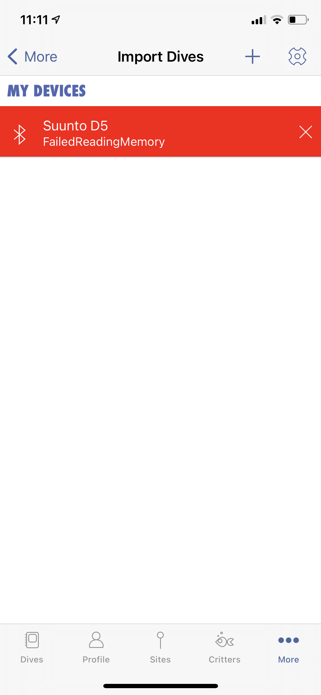 For anyone else who is having issues syncing their D5 with iOS, after following Nick's instructions MacDive was able to recognise my device, but the first time the app wasn't able to read the data from the watch. (See screenshot). I got it to work by disconnecting the D5 in bluetooth settings and retrying the sync. For some reason it took 3 tries before it worked but finally the link was established so it may require a few attempts to get this working it seems in some cases.