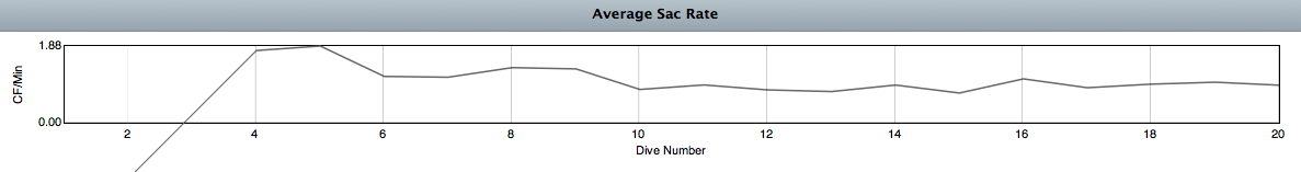 Also, I'd like to add that the graph seems way off compared to the table. I have 2 of my dives at 0.49 and 0.52 cu. ft. per minute in the table and when I generate the graph in statistics, they show up as an "average" of 0.90 and 0.94 (respectively) cu. tf. per minute.