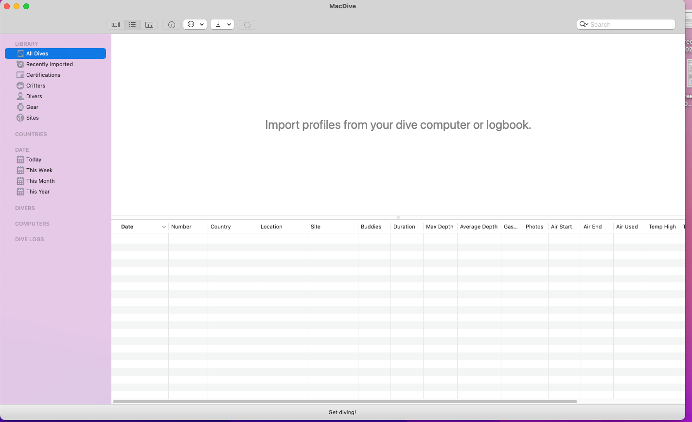 I just launched Mac Dive and this is what I'm seeing. I've been using it for 7 years worth of dives, and over 400 dives with photos and critters all tagged.