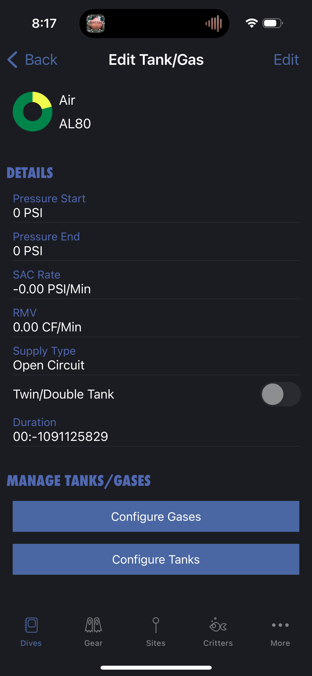 -[bug] When importing, my gas consumption data gets corrupted. First, MacDive creates two tanks, although I’ve only dived with one. Second, the airtime is set as a massive number, which must be bigger than MacDive can handle, because if I click it to manually edit, the app crashes.
