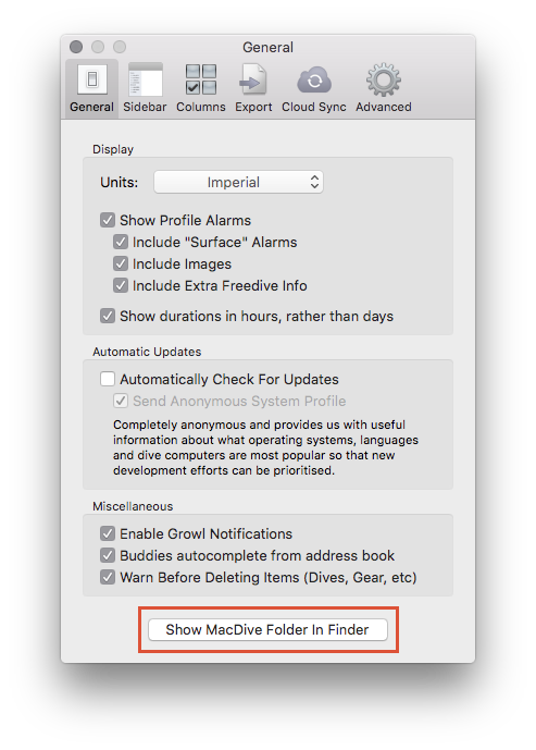You can get to the data folder from MacDive's preferences.