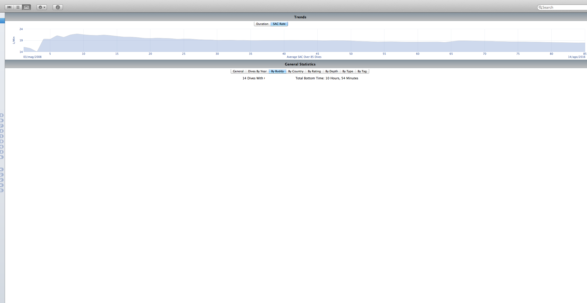 3) When i go to statistics page macdive seem to hang and if i press "show as a list" button nothing more is displayed (Att2). Must quit and re-lauch.