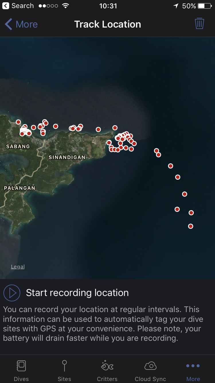 As a result, I have a lot of tracked locations. In several cases, the dives crossed each others and it's very hard from the list of points to be able to determine when it was tracked (e.g. if I should want to determine the various points for a single dive).