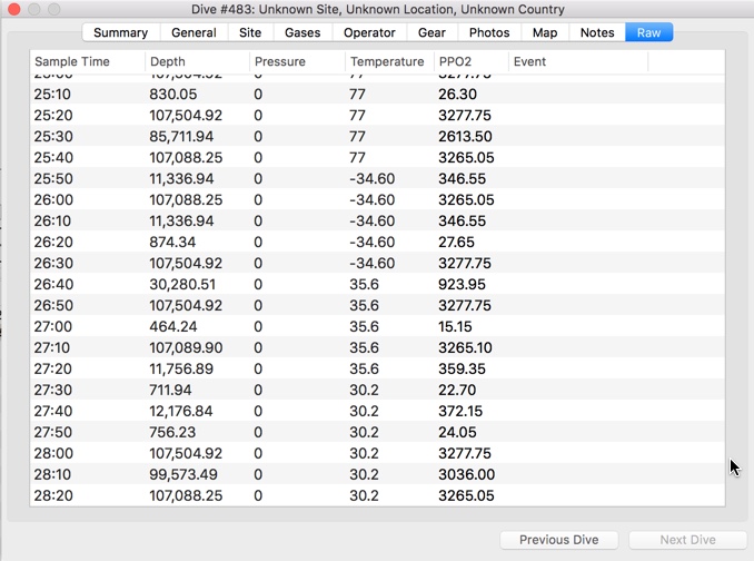 I returned a Suunto DX for a battery replacement and they upgraded the firmware at the same time. Now the import contains crazy values.