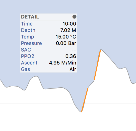 The reason I was looking was that these are from my open water qualification dives. When I looked at the log file from the dive where I did my CESA it showed as red but with an ascent rate of 0.69m/min and I was struggling to see a) how 0.69m/min was a fast ascent and b) how I could possibly have been going that slow.
