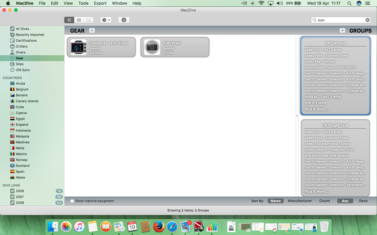 Hi Nick, I have had a gear item for my EON for some time, and have over 200 dives synced to my Mac.