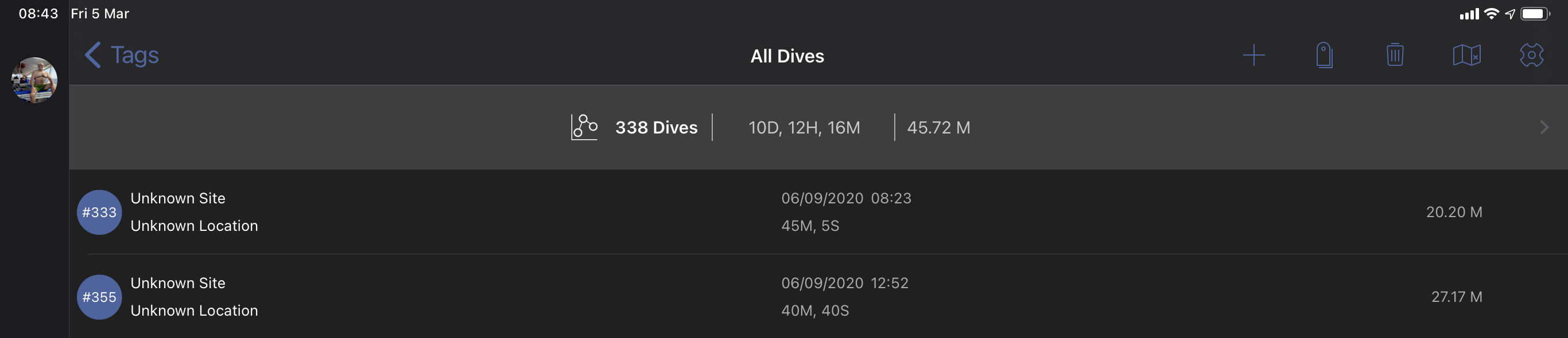 Ahh I think that I found out what was causing the confusion. I was sorting by date. But I had accidentally imported some dives from a friend’s computer, and the (nearly) duplicate dive was sorted after my dives. That sounds weird, but I think that’s what was happening.